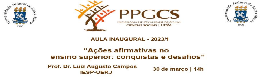A Coordenação do Programa de Pós-Graduação em Ciências Sociais convida a comunidade acadêmica para a Aula Inaugural do 1º semestre letivo de 2023 – “Ações Afirmativas no ensino superior: conquistas e desafios”, que será ministrada pelo Prof. Dr. Luiz Augusto Campos, da IESP – UERJ, no próximo dia 30 de março, quinta-feira.