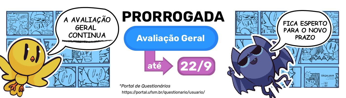 A pesquisa de Avaliação Geral da UFSM foi prorrogada até o dia 22/09. Estamos com apenas 22% de participação entre os discentes do CCSH. Logo, solicitamos a sua colaboração para que tenhamos resultados representativos e mais recursos para o CCSH.