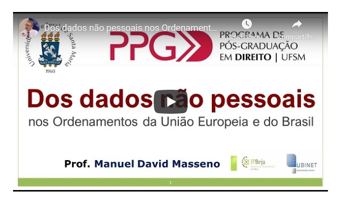 O Prof. Dr. Manuel David Masseno participou, na segunda-feira, 04 de maio de 2020, da disciplina “Direitos na Sociedade em Rede”, ministrada pela coordenadora do Núcleo de Direito Informacional no Programa de Pós-Graduação em Direito da Universidade Federal de Santa Maria.