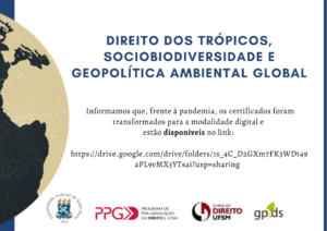 Certificados do evento “Direitos dos Trópicos, Sociobiodiversidade e Geopolítica Ambiental Global” já disponiveis