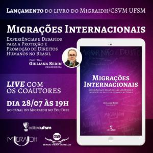 O Migraidh convida para a Live de Lançamento do livro “Migrações Internacionais: Experiências e Desafios para a Proteção e Promoção de Direitos Humanos no Brasil”, publicado pela Editora da UFSM, com a participação das autoras e autores.
