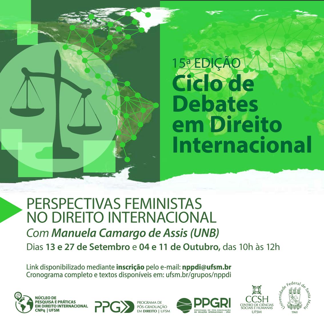 O NPPDI – Núcleo de Pesquisa e Práticas em Direito Internacional (CNPq/UFSM) convida para a 15a Edição do Ciclo de Debates em Direito Internacional: PERSPECTIVAS FEMINISTAS NO DIREITO INTERNACIONAL