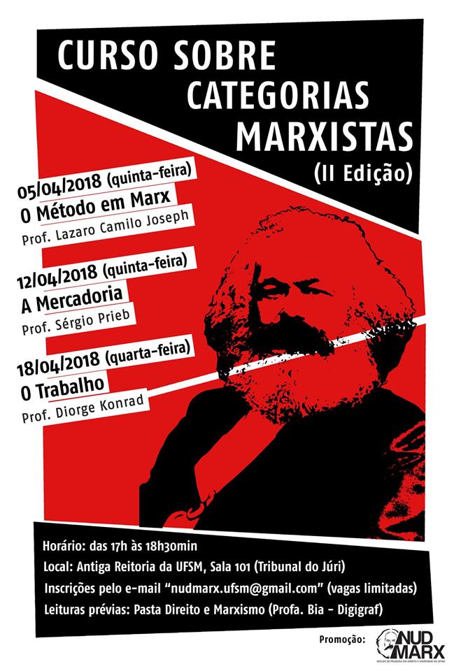 Durante o mês de junho de 2018, o NuDMarx promoveu a segunda edição do Curso sobre Categorias Marxistas. A necessidade de realizar uma segunda edição decorreu do próprio contexto histórico-político enfrentado no Brasil, marcado por crises de representação e uma derrocada de direitos sociais. Dessa forma, ao proporcionar conhecimento sobre as categorias básicas trabalhadas por Marx, possibilitou-se que os participantes adquirissem uma leitura crítica da situação atual.