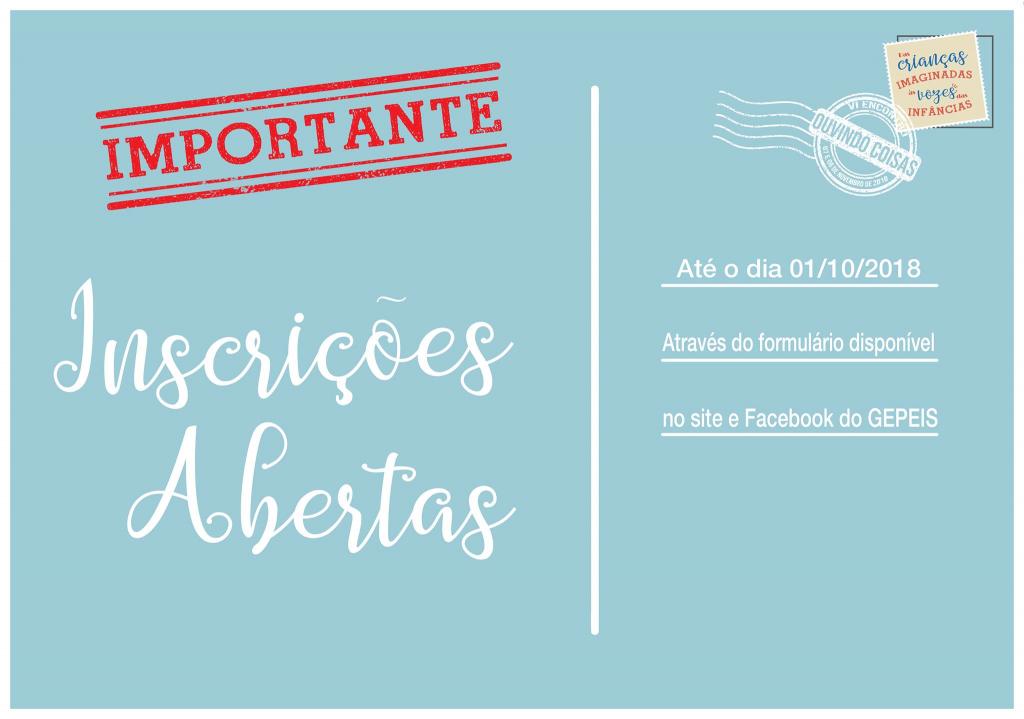 Inscrições: até o dia 01 de outubro de 2018
