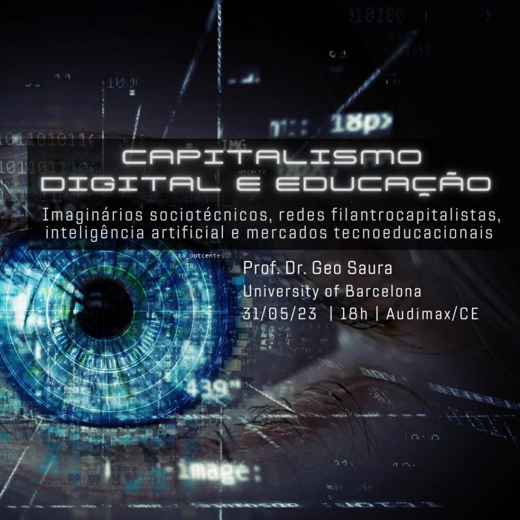 O Programa de Pós-Graduação em Educação convida toda a comunidade acadêmica para prestigiar a atividade promovida em conjunto com o professor Dr. Geo Saura,da Universidade de Barcelona, entitulada “CAPITALISMO DIGITAL E EDUCAÇÃO: Imaginários sociotécnicos, redes filantrocapitalistas, inteligência artificial e mercados tecnoeducacionais”.