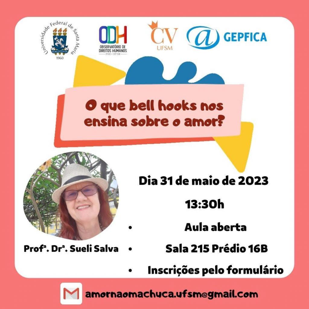A primeira atividade será uma aula aberta na forma de roda de conversa com a Profª Drª Sueli Salva, com o tema: “O que bell hooks nos ensina sobre o amor?”