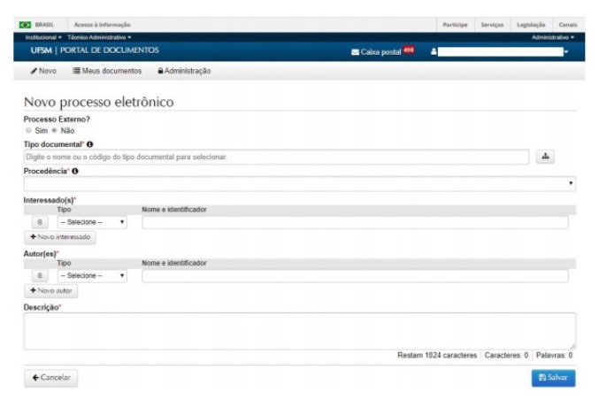 - Irá aparecer esta tela para NOVO PROCESSO ELETRÔNICO.