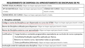 – Requerimento de Dispensa ou Requerimento de Aproveitamento de Disciplinas ;