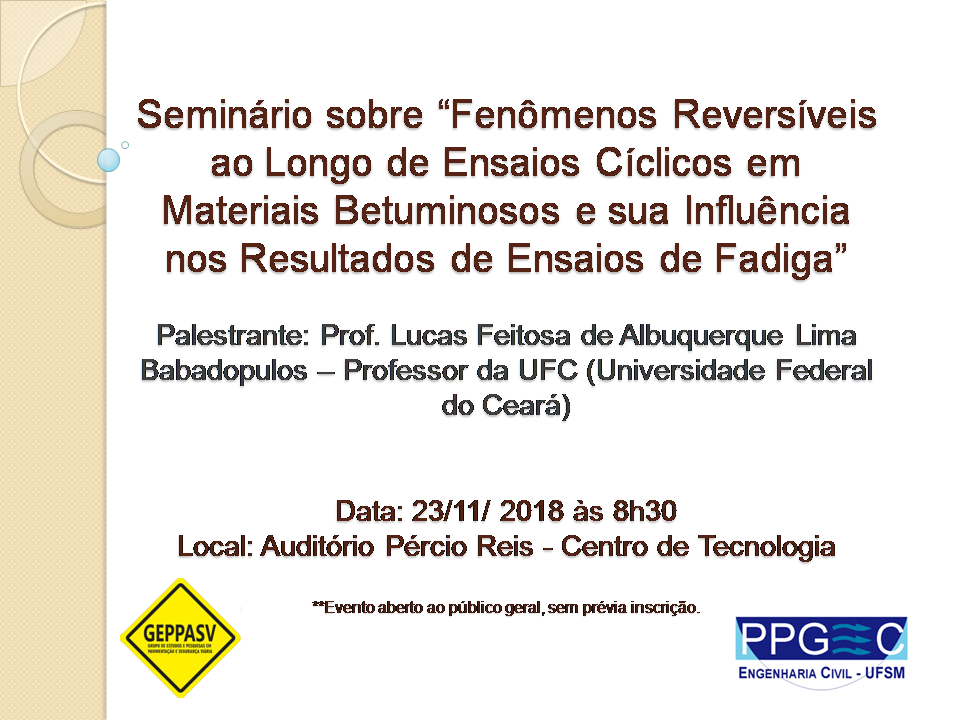 PARTICIPE Do seminário “Fenômenos Reversíveis ao Longo de Ensaios Cíclicos em Materiais Betuminosos e sua Influência nos Resultados de Ensaios de Fadiga”