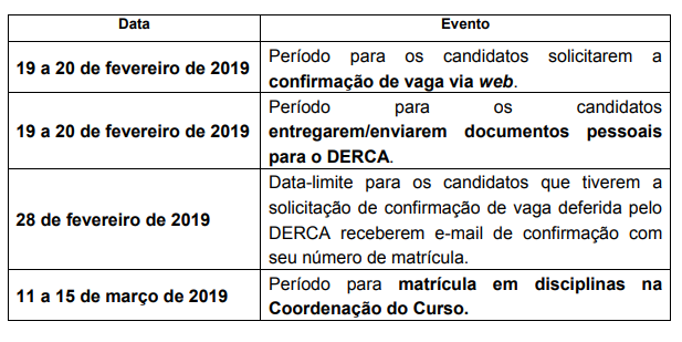 A Coordenação do Programa de Pós-Graduação em Engenharia Civil, após publicação oficial neste link, convoca os candidatos aprovados suplentes de pós-graduação, para a confirmação de vaga e matrícula no respectivo curso de aprovação, no 1º semestre letivo de 2019.