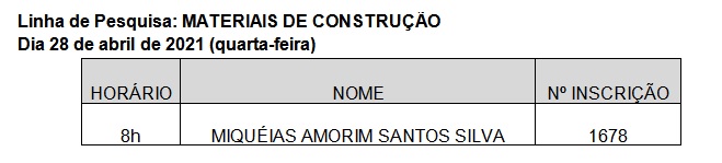 Linha de Pesquisa: MATERIAIS DE CONSTRUÇÃO