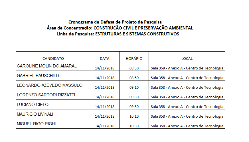 A prova escrita para o processo seletivo de mestrado e doutorado para Engenharia Civil – Edital 027/2018 ocorrerá nesta segunda-feira 05/11/2018. Terá início às 8h30min e término 12h, nas salas 160 e 161 do Anexo A do Centro de Tecnologia.