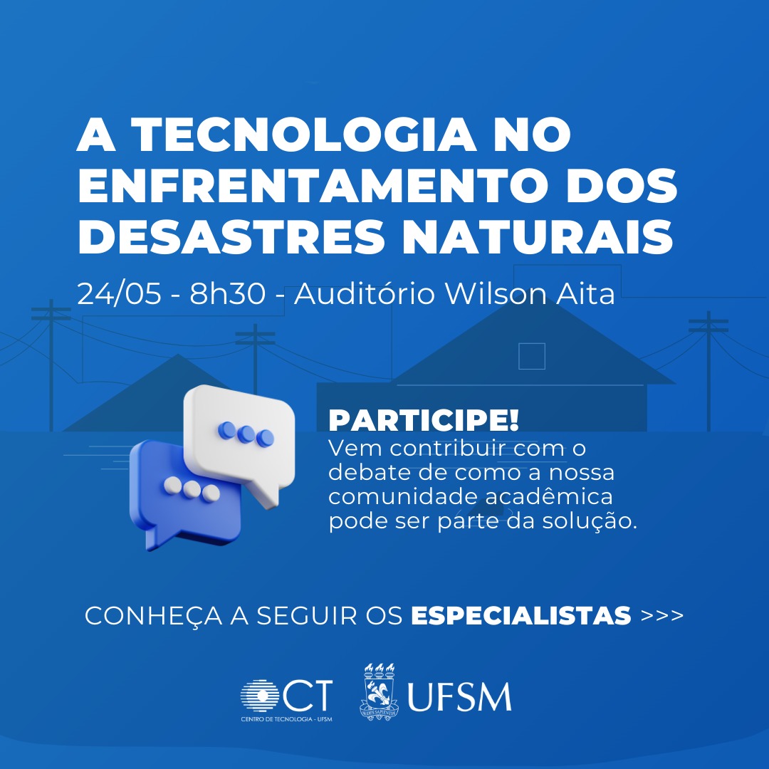 O evento tem a participação de docentes da UFSM nas áreas de Meteorologia, Hidrologia, Geotecnia, Infraestrutura, Resíduos, Energia, os especialistas são: