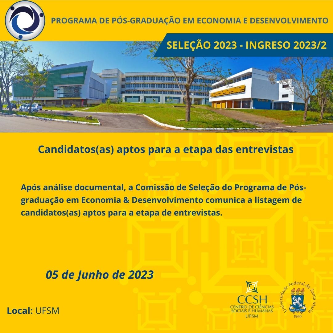 Edital Geral 10/2023 – ingresso no 2º semestre de 2023Candidatos(as) aptos para a etapa das entrevistas