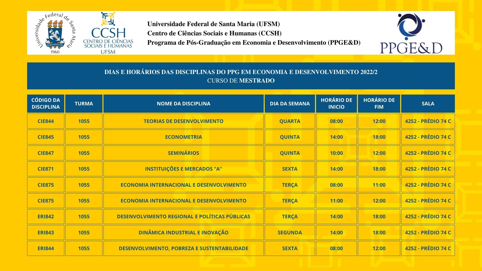 Horário 2022/2 PPGE&D – Ajuste de matricula por e-mail: sipos.ccsh@ufsm.br