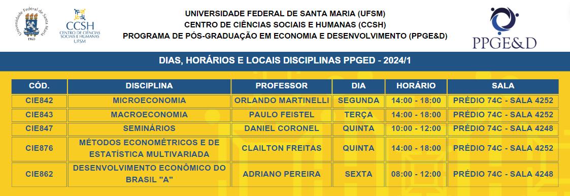 Horário 2024/1 – Mestrado em Economia & Desenvolvimento – PPGE&D