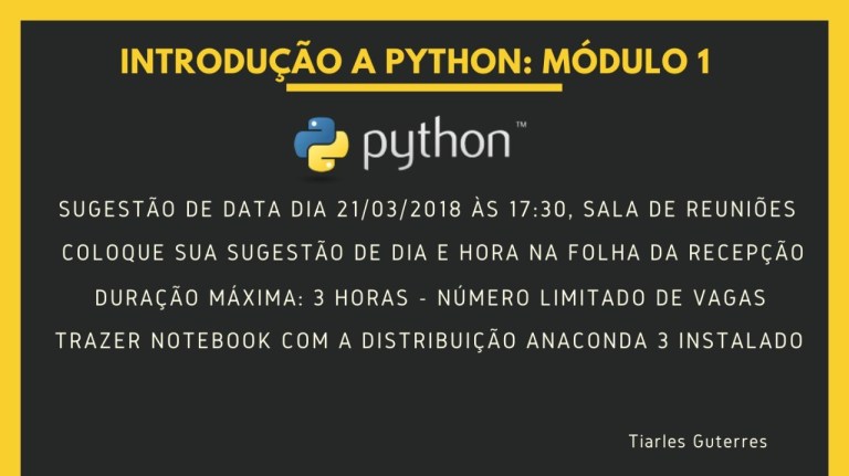 This course covered the study of the Python programming language. The basic concepts of the language were presented, such as arithmetic and Boolean logic, conditions and file manipulation. From these basic concepts, fundamentals of object-oriented programming and topics about the matplotlib and numpy libraries were presented.