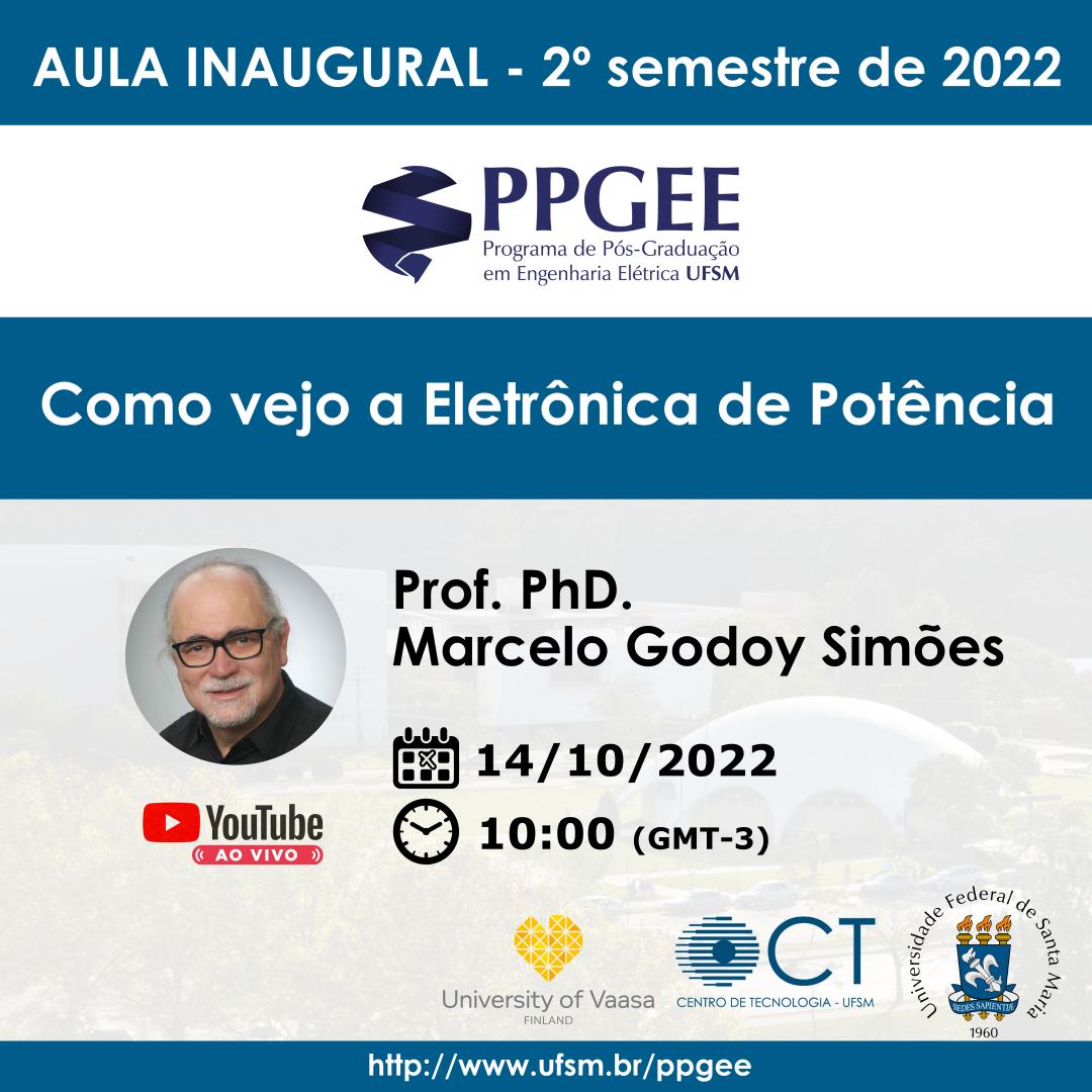 No dia 14 de outubro, sexta-feira, às 10h (horário de Brasília), no Canal do PPGEE no YouTube, acontecerá a Aula Inaugural do 2º semestre de 2022 do Programa de Pós-Graduação em Engenharia Elétrica (PPGEE), da Universidade Federal de Santa Maria (UFSM).