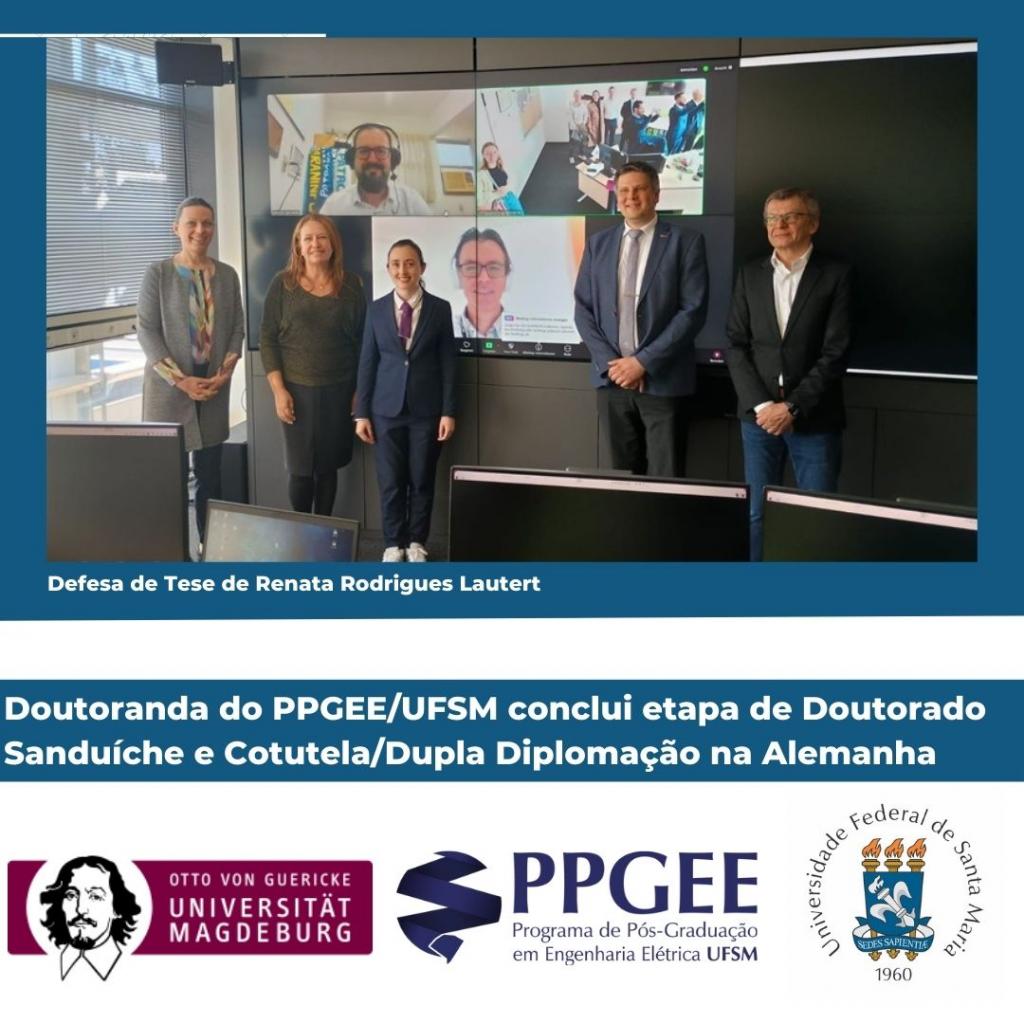 A doutoranda em Engenharia Elétrica da Universidade Federal de Santa Maria, Renata Rodrigues Lautert, orientanda da Prof.ª Luciane Silva Neves, vinculada ao Centro de Excelência em Energia e Sistemas de Potência (CEESP/UFSM), desenvolveu seu doutorado com cotutela/dupla diplomação na Otto-von-Guericke-University Magdeburg (OVGU), da Alemanha, defendendo a tese no dia 27 de março de 2025. O trabalho intitulado “Grid and System-Oriented Use of Flexibility Provided by Energy Communities” foi apresentado para a seguinte comissão examinadora: Prof.ª Dr.ª Luciane Silva Neves (Orientadora-UFSM), Prof. Dr. Martin Wolter (Orientador-OVGU), Prof. Dr. Adriano Peres de Morais (UFSM), Prof. Dr. Georg Rose (OVGU), Prof. Dr. Mauricio Sperandio (UFSM) e Prof.ª Dr.ª Ulrike Steinmann (OVGU).