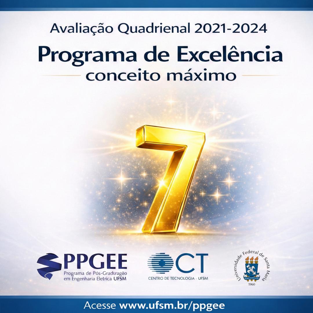 Este resultado reafirma a excelência do PPGEE/UFSM e nos consolida em um grupo muito seleto de programas de pós-graduação de alto nível na área de Engenharias IV no Brasil.