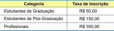 O valor das taxas de inscrição no evento são apresentadas a seguir: