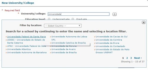 No campo University/college digite apenas Universidade que a UFSM aparecerá como primeiro resultado da busca. Para continuar o cadastro, clique no link Universidade Federal de Santa Maria e preencha o restante dos campos e para finalizar clique em Save.