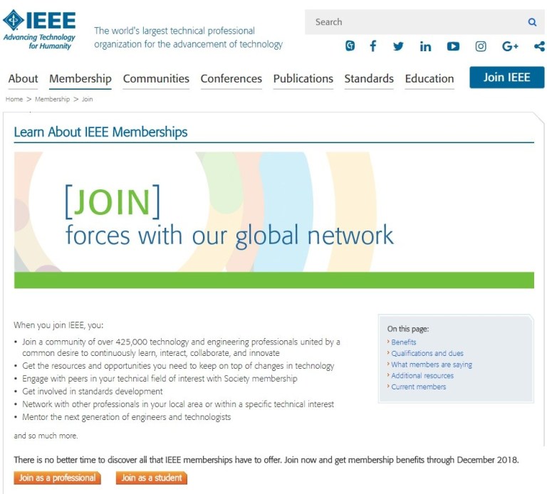 Agora clique em Join IEEE e posteriormente clique em Join as student
