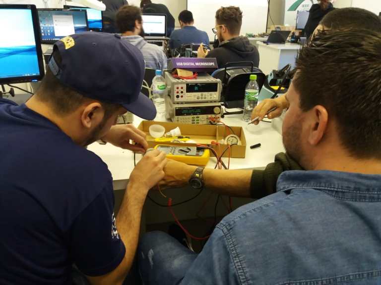 The LED Lamps maintenance was developed in a joint action of the IEEE IAS UFSM SB Chapter with CTISM, in a workshop held on October 22. The workshop was composed of two parts. The first was theoretical, where students could learn a little more about electronics, reviewing technical concepts and basic topologies of LED lamps. The second part was focused on practice, with students applying knowledge of electronic soldering and electronic components for the maintenance of the lamps.