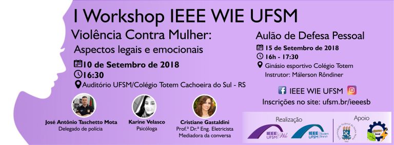 No dia 10 de setembro o grupo IEEE WIE UFSM estará promovendo seu primeiro workshop em Cachoeira do Sul – RS, com apoio do IEEE UFSM SB e seus capítulos e do Diretório Acadêmico das Engenharias de Cachoeira do Sul.