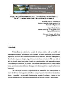 O USO DO JOGO LABIRINTO RELATIVO COMO FERRAMENTA FACILITADORA NO ENSINO DE NÚMEROS INTEIROS