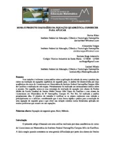 SOMA E PRODUTO DAS RAÍZES DA EQUAÇÃO QUADRÁTICA: CONHECER PARA APLICAR