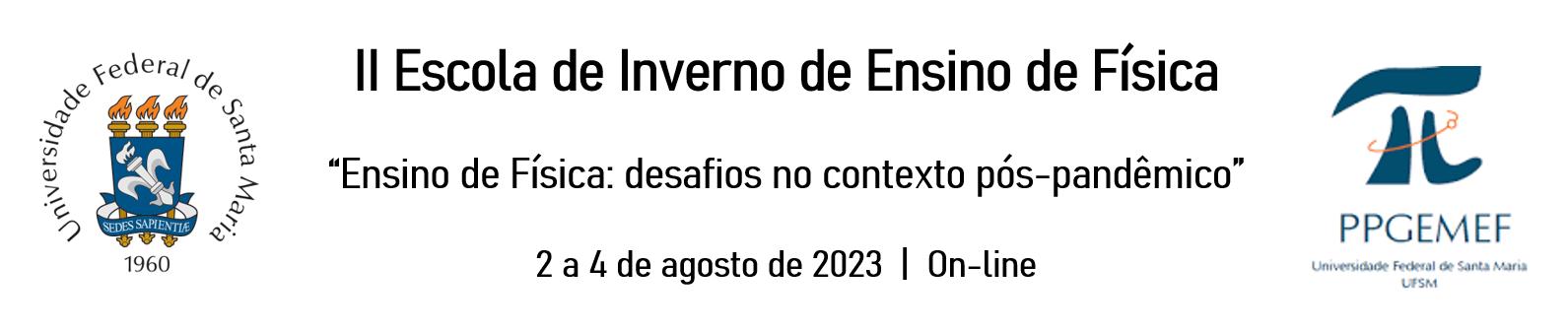 No período de 2 a 4 de agosto de 2023, de forma on-line, a Universidade Federal de Santa Maria (UFSM) estará promovendo a II Escola de Inverno de Ensino de Física. O evento é organizado pelo Programa de Pós-Graduação em Educação Matemática e Ensino de Física (PPGEMEF) do Centro de Ciências Naturais e Exata (CCNE). Com a temática geral “Ensino de Física: desafios no contexto pós-pandêmico”, o evento estará organizado em palestras e apresentação de trabalhos (comunicações científicas e relatos de experiência), tendo como objetivo principal proporcionar espaços de diálogo e aprofundamento em torno de questões centrais ao Ensino de Física, em seus diferentes níveis, etapas e modalidades da educação.