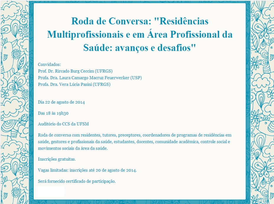 O evento: “Roda de Conversa -As Residências Multiprofissionais e em Área Profissional da Saúde: avanços e desafios” a ser realizado nesta sexta-feira (22/08).
