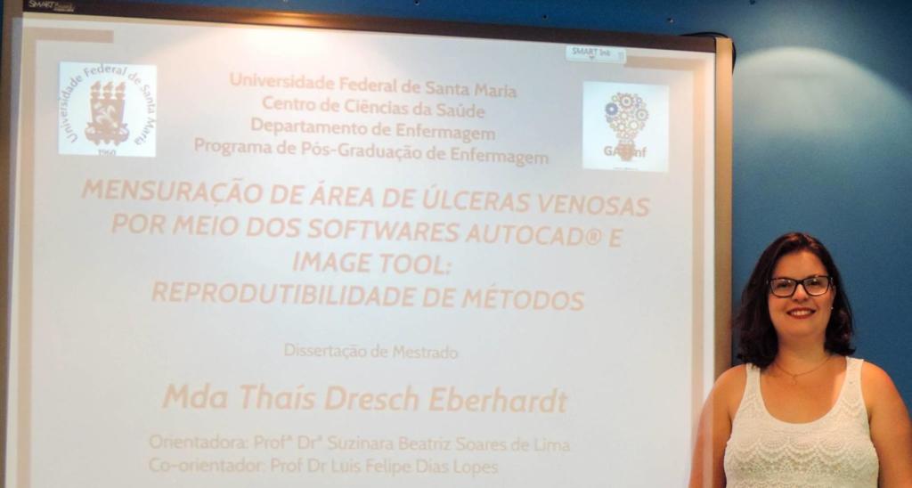 A dissertação intitulada: MENSURAÇÃO DE ÁREA DE ÚLCERA VENOSA POR MEIO DOS SOFTWARES AUTOCAD E IMAGE TOOL: REPRODUTIBILIDADE DE MÉTODOS, foi defendida pela aluna Thaís Dresch Eberhardt no dia 21 de janeiro de 2016, às 8:30 horas no auditório do CPD.