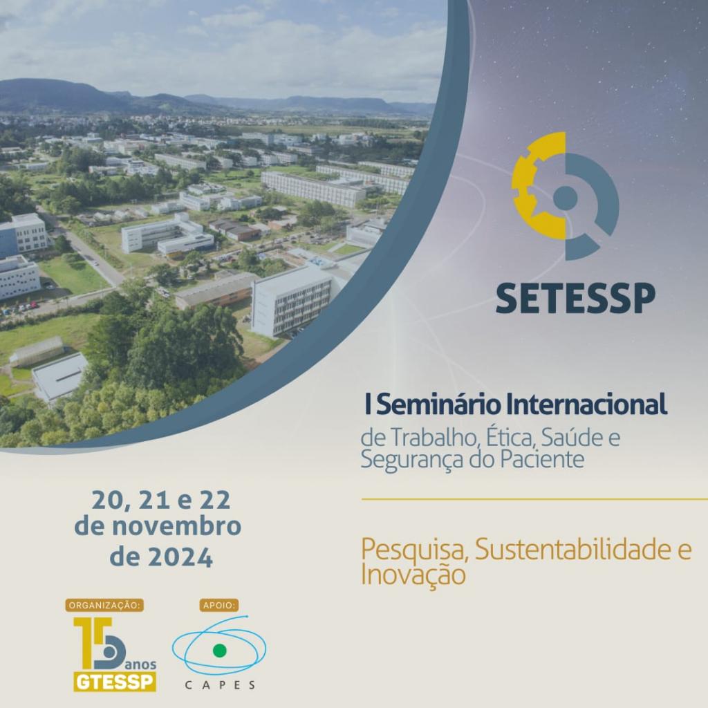 I SETESSP (I Seminário Internacional de Trabalho, Ética, Saúde e Segurança do Paciente), um evento dedicado a promover a discussão e a troca de conhecimentos sobre os desafios e avanços no campo da pesquisa, sustentabilidade e inovação.
