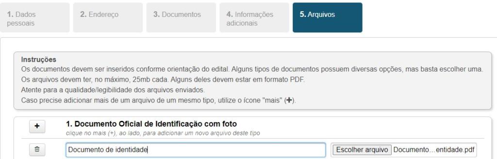 ATENÇÃO, conforme disposto aqui, alertamos aos candidatos atenção para o preenchimento do formulário de inscrição no item 5. Arquivos.