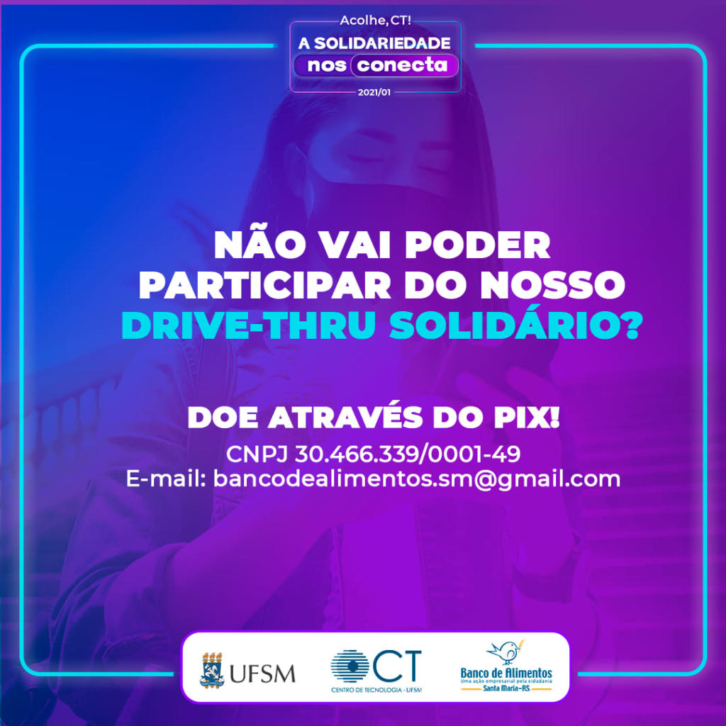 👉 O Drive é uma parceria entre o Centro de Tecnologia e o Banco de Alimentos de Santa Maria, com o objetivo de arrecadar alimentos para as família da cidade que precisam.