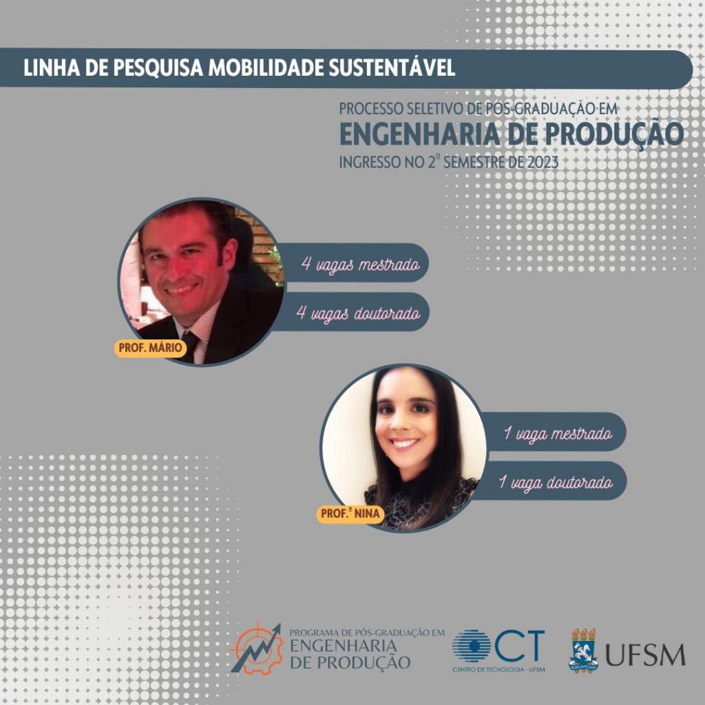 A comissão de seleção divulga o quantitativo de vagas na linha de pesquisa Mobilidade Sustentável para o próximo edital de seleção do PPGEP.