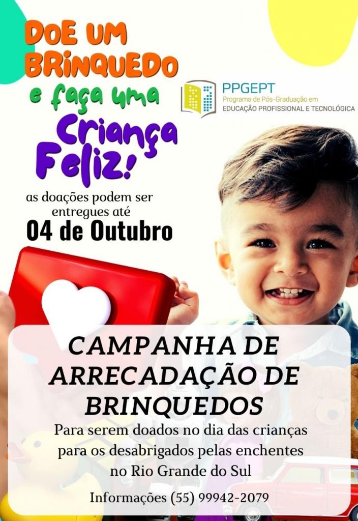 A turma 2022 está fazendo uma campanha de arrecadação de brinquedos para serem doados no dia das crianças para os desabrigados pelas enchentes no Rio Grande do Sul.