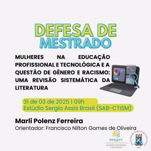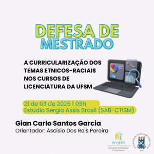 Defesas de mestrado na sexta dia 21/03 e na segunda-feira dia 31/03 dos discentes Gian Carlo Santos Garcia e Marli Polenz Ferreira.