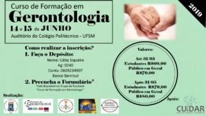 Estão abertas até dia 07 de Junho as inscrições para o Curso de Formação em Gerontologia. Evento que é idealizado por professores e alunos do PPG em Gerontologia e ocorre todos os anos. Esse tem como público alvo estudantes de cursos técnicos e graduação, e também a comunidade em geral.