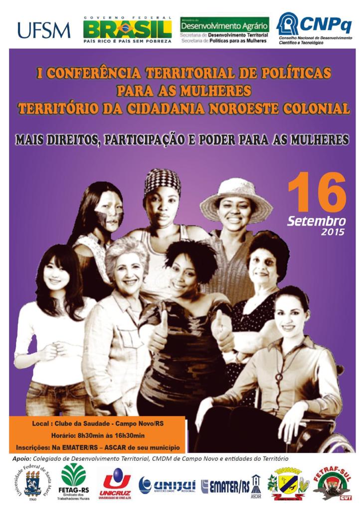 A Conferência Territorial de Políticas para as Mulheres, foi realizada no Clube da Saudade, município de Campo Novo/RS, no dia 16 de setembro de 2015.