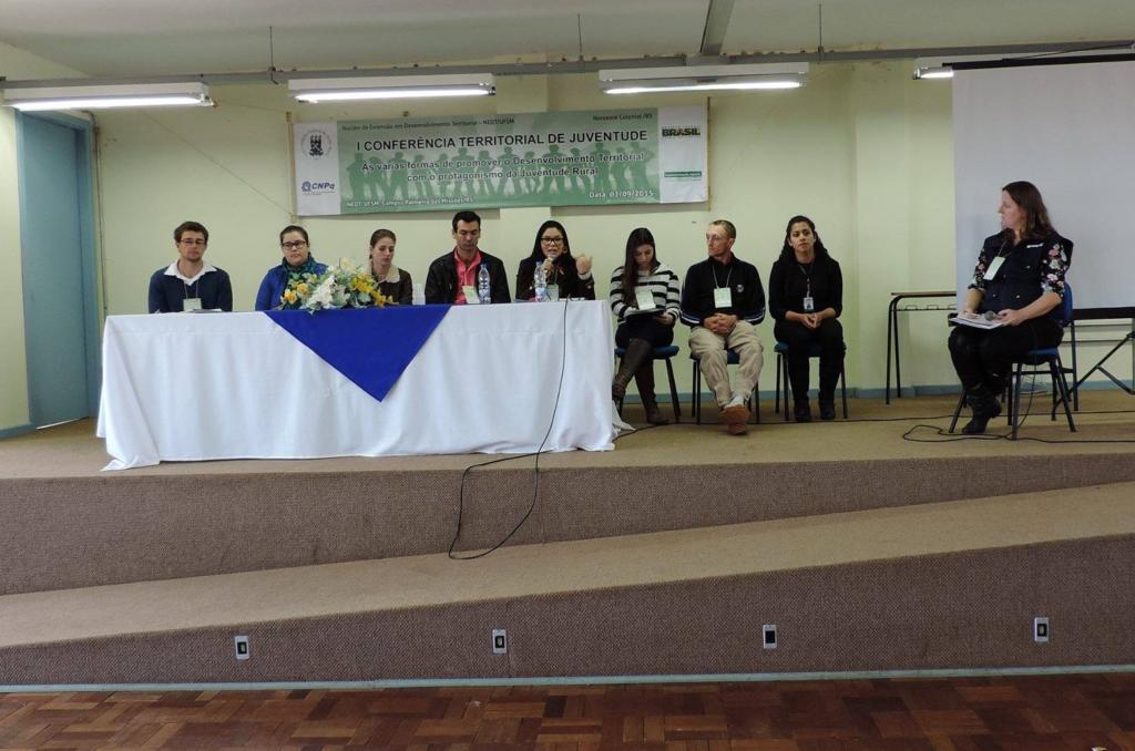 O Núcleo de Extensão em Desenvolvimento Territorial – NEDT – Noroeste Colonial/RS, promoveu no dia 02 de setembro de 2015 a I Conferência Territorial de Juventude do Território da Cidadania Noroeste Colonial/RS.O evento ocorreu no auditório da UFSM- campus de Palmeira das Missões e contou com a presença de mais de 150 jovens de diversos municípios do Território, inclusive diversas lideranças municipais e a comunidade acadêmica.