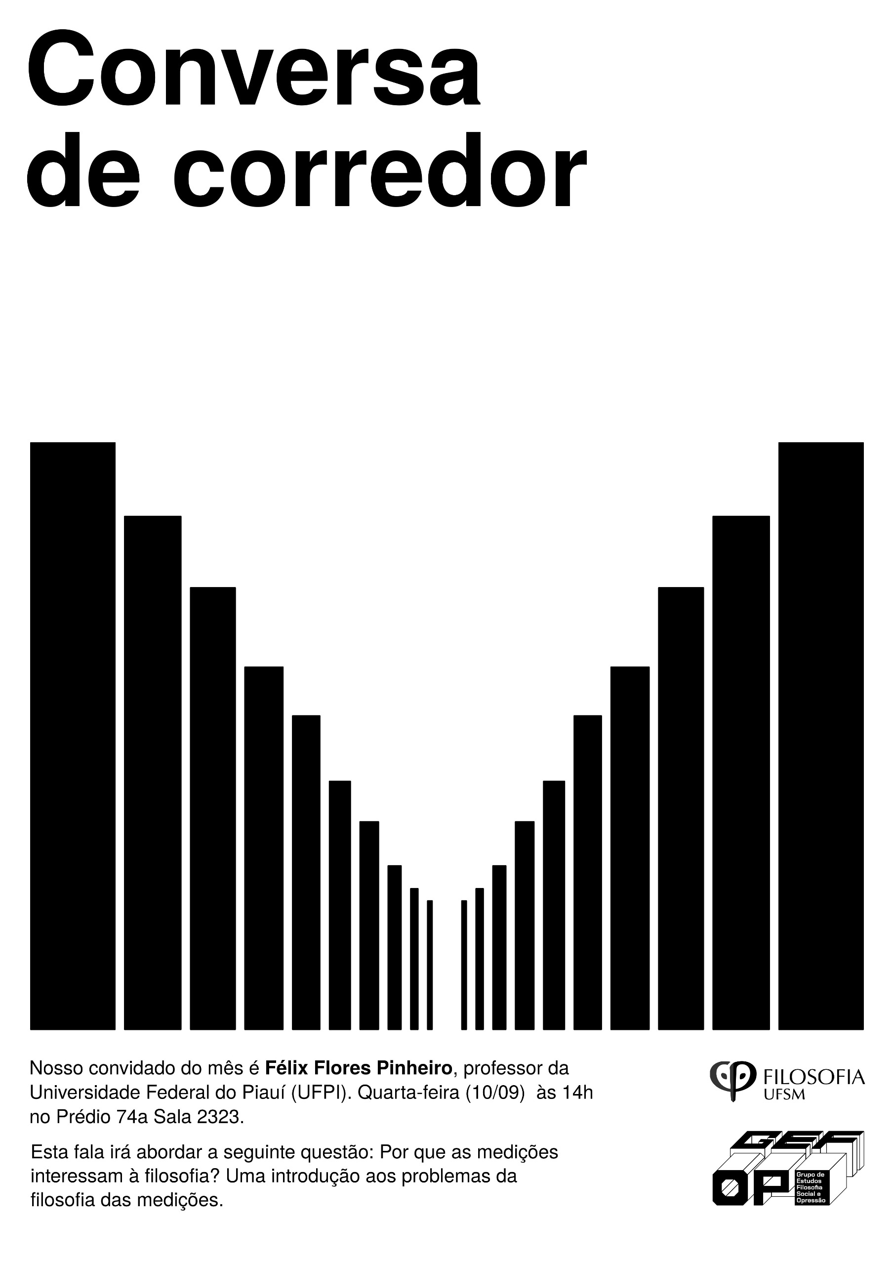 Prezados (as) gostaríamos de lhes convidar para a palestra de Félix Pinheiro, professor da Universidade Federal do Piauí (UFPI)intitulada “Por que medições interessam à filosofia? Uma introdução aos problemas da filosofia da medição”. A palestra ocorrerá dia 10.09.25, quarta-feira, às 14h, em formato presencial, na sala 2323 do Prédio 74A do CCSH/UFSM.