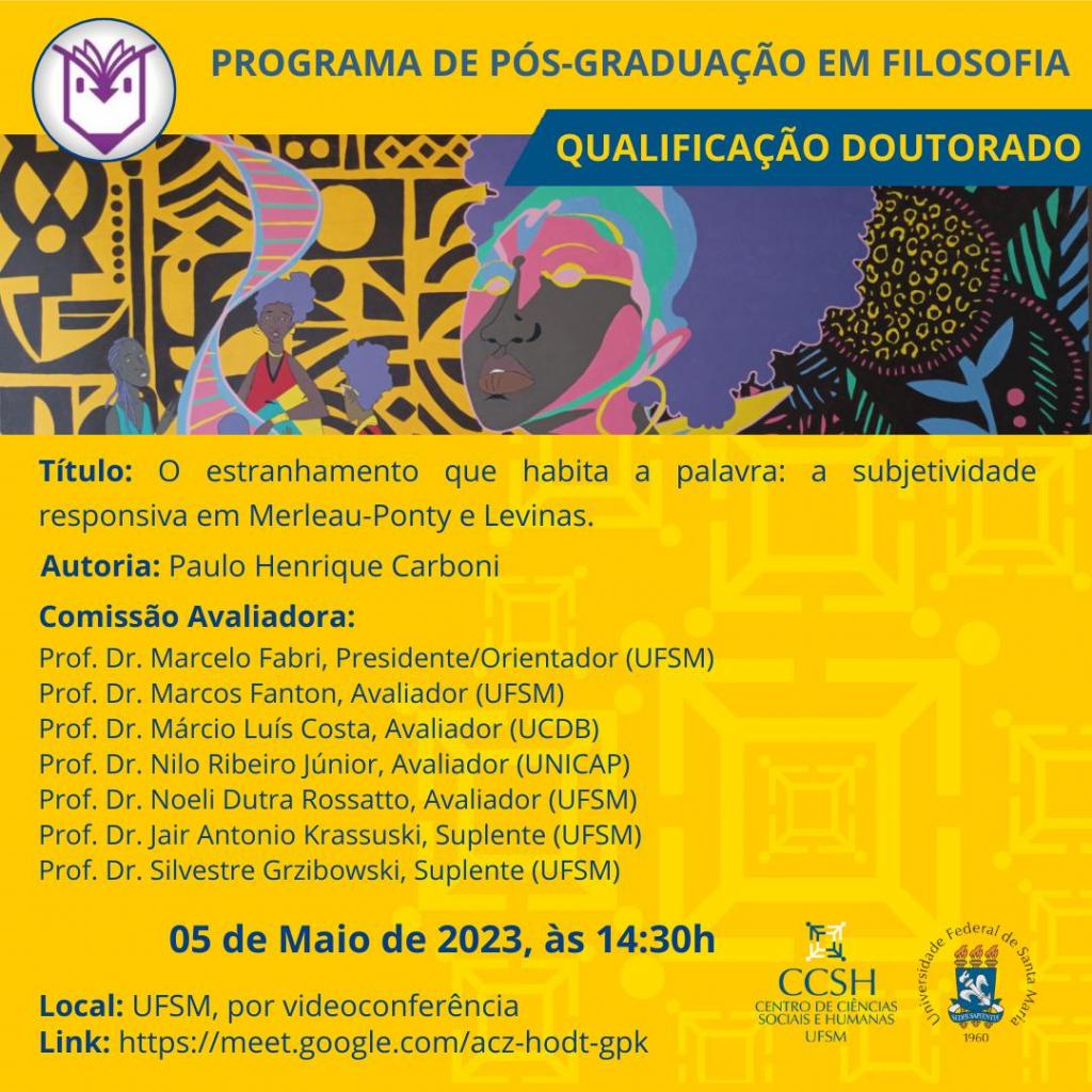 Qualificação de doutorado – Tiago Sabino RibasO Programa de Pós-Graduação em Filosofia divulga a banca de Qualificação de doutorado do aluno Tiago Sabino Ribas, com o título “A Odisseia [...]