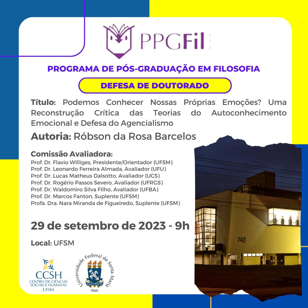 Defesa de mestrado – Piero DisconziO Programa de Pós-Graduação em Filosofia divulga a banca de defesa de mestrado do aluno Piero Disconzi , com o título “A Vulnerabilidade Absoluta [...]