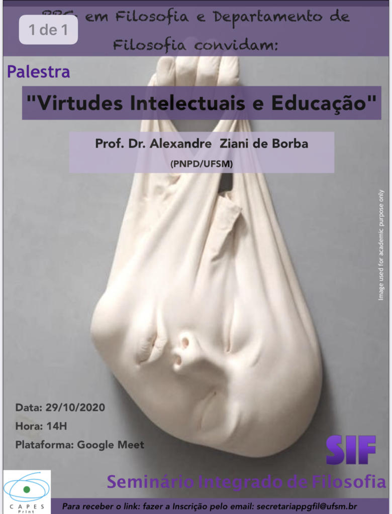 SIF -Seminário Integrado de Filosofia- Palestra “Virtudes Intelectuais e Educação”, com Prof. Dr. Alexandre Z. de Borba (PNPD/UFSM) – Data: 29/10/2020 às 14h