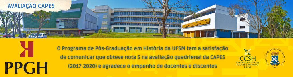O curso de Pós-Graduação em História está localizado em Campus Camobi – UFSM na modalidade Mestrado – Presencial sendo Integral o seu turno de funcionamento. A área de conhecimento do curso é classificada como História, Poder e Cultura. Atualmente, a coordenação é de responsabilidade de GUILHERME GALHEGOS FELIPPE, a coordenação substituta de MARIANA FLORES DA CUNHA THOMPSON FLORES e a secretaria de RUBE AFONSO RODRIGUES NETO.