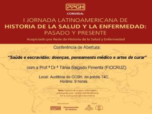 A conferência de abertura do evento, ocorrerá no dia 18 às 9:00,  será ministrada pela Profª. Drª. Tânia Salgado Pimenta . A professora possui graduação em História pela UFRJ, mestrado e doutorado em História pela UNICAMP. Seus projetos são:  “A interiorização da assistência: um estudo sobre a expansão e a diversificação da assistência à saúde no Brasil (1808-1945)” e “Etnicidade, africanos e doenças no atlântico: padrões sócio-demográficos e assistência no Rio de Janeiro (1810-1888)”.O PPGH convida toda comunidade para prestigiar essa conferência.