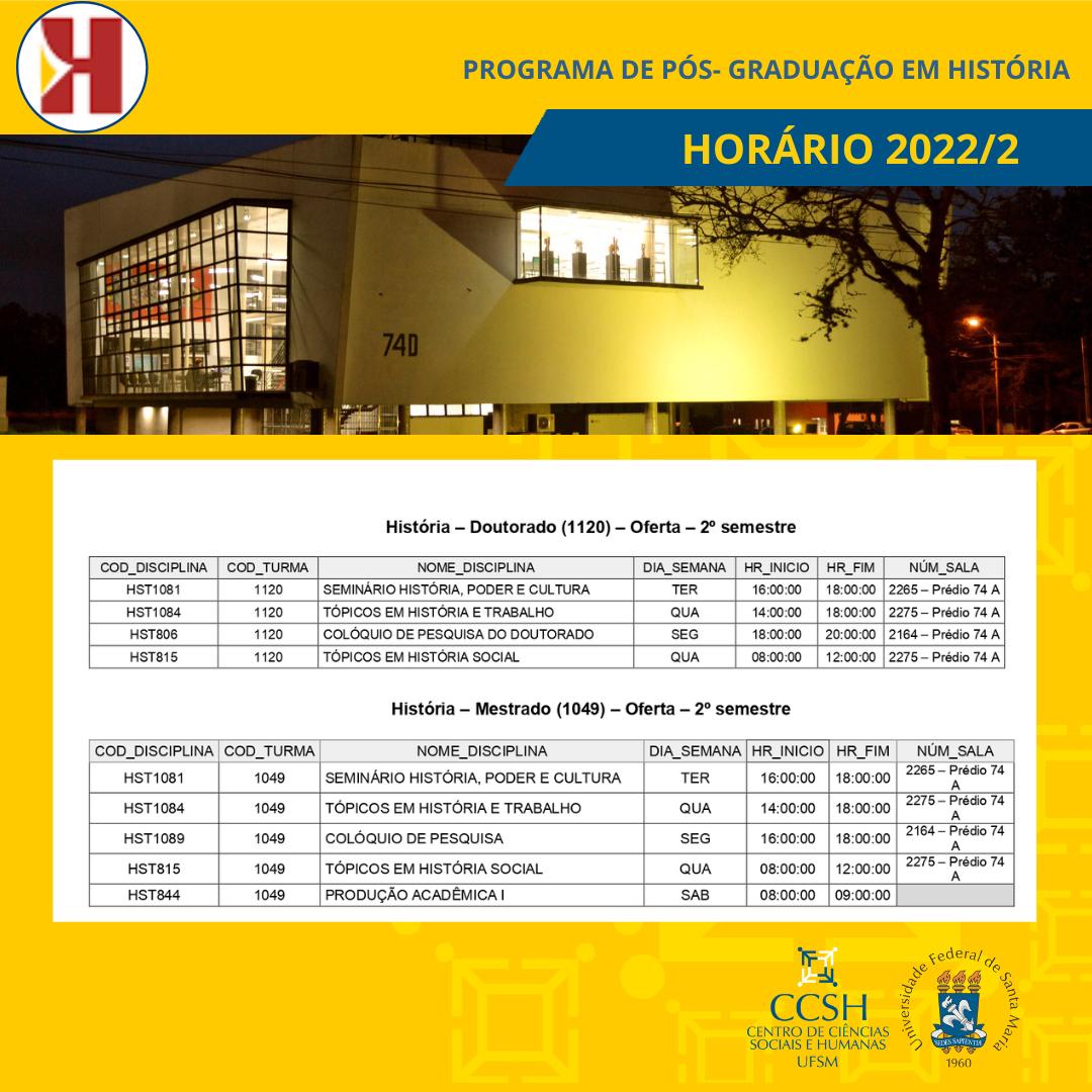Horário 2022/2 PPGH – Ajuste de matricula por e-mail: sipos.ccsh@ufsm.br